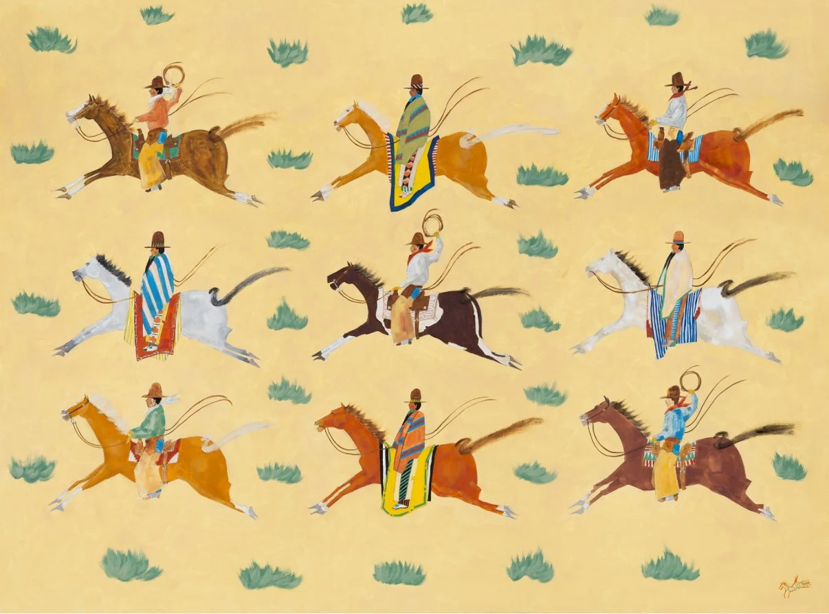 Taos Study 1 $950.00 Taos Study 2 $950.00 Blue Herd Study $1,200.00 Trois Chevaux Study $1,200.00 Pony Medley Study $1,200.00 Past, Present & Future Series Study I $1,100.00 Past, Present & Future Series Study II $1,100.00 Past, Present & Future Series Study III $1,100.00 Cheval Vert Study $1,100.00 Jockey 1 Study $700.00 Jockey 2 Study $700.00 Prairie Trail X Yellowstone Medium Size Print $300.00 Prairie Trail X Yellowstone Original Size Print $600.00 Prairie Trail X Yellowstone Canvas Giclée Print $1,600.00 La Traversée Medium Size Print $300.00 La Traversée Original Size Print $600.00 La Traversée Canvas Giclée Print $1,600.00